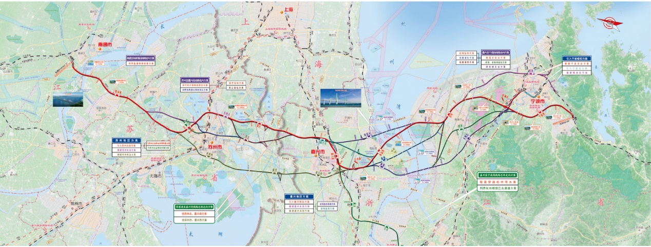 通蘇嘉南鐵路位于長三角城市群中心地區江蘇省和浙江省境內,為南北向鐵路,線路起自南通市南通西站,與鹽通鐵路正線貫通,向南跨過長江后(利用滬通四線橋),經過蘇州市、嘉興市、跨過杭州灣進入寧波市。正線線路長度約337km, 其中新建長度約335km, 設計速度350km/h。項目投資預估算總額707.51億元。武漢院承擔杭州灣跨海大橋中航道至慈溪站(不含慈溪站)的勘察設計工作。