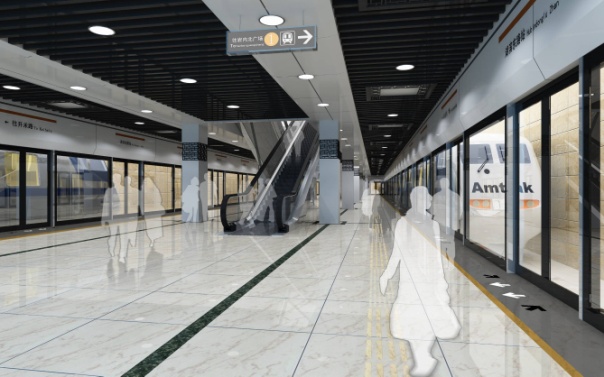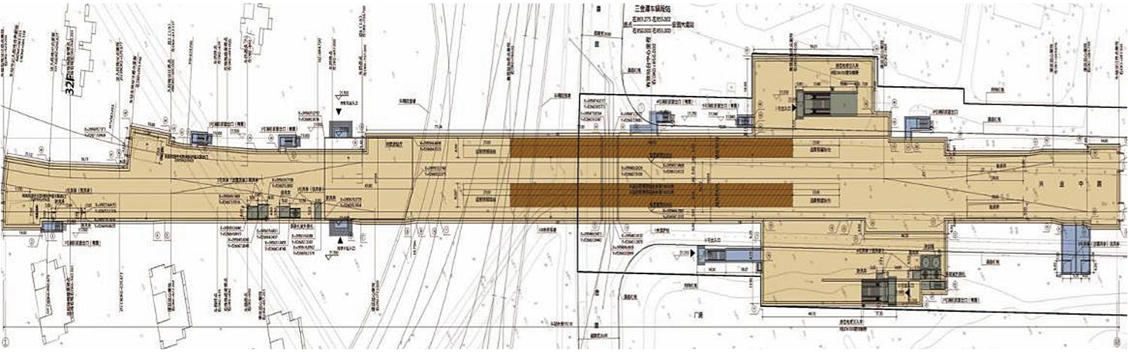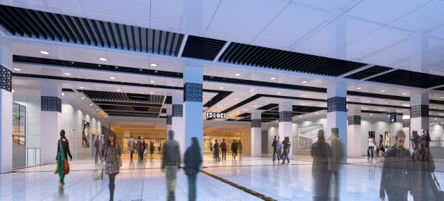 武漢軌道交通8號線宏圖大道站,位于金銀潭大道與宏圖大道交叉路口處雙子座藝術大廈架空部分的正下方,車站為地下兩層13m島式站臺車站,總長度286m,總建筑面積3.8萬平方米。車站在主體站廳層范圍正上方設置一個面積為2300平方米的橢圓形下沉廣場。宏圖大道與金銀潭大道交叉路口西側為武漢客廳二期工程項目,南側為大連海昌海洋極地世界,東側為保利項目地塊。