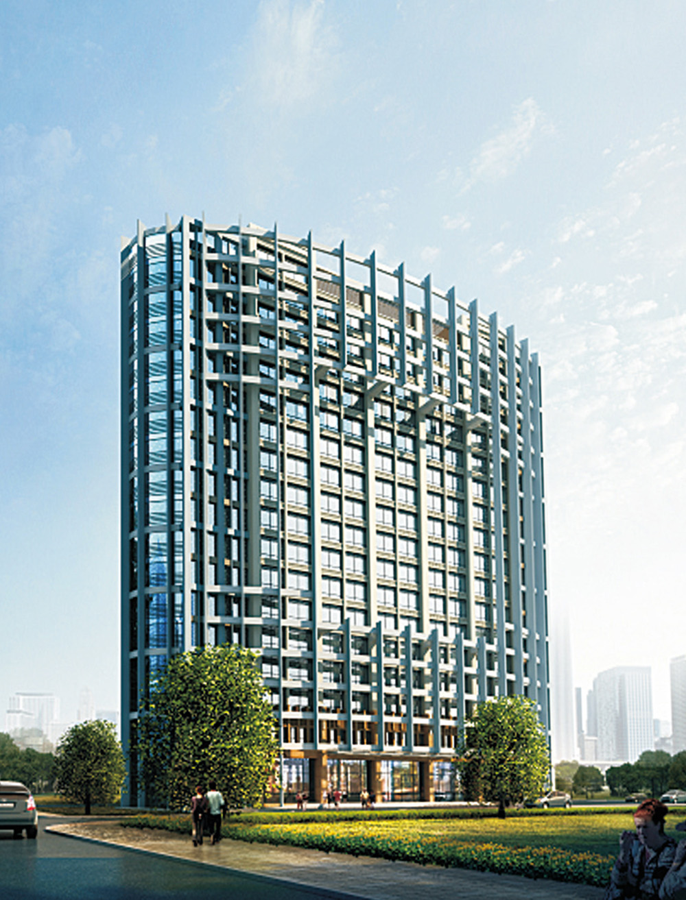 宜昌東鐵路公寓為框架結構,地上1 7 層, 地下1 層,共設客房321間,總建筑面積為12618㎡, 大樓立面采用韻律的處理手法,玻璃、石材幕墻的點綴加強了虛實對比效果,金屬構架和幕墻的穿插形成橢圓的視覺效果,使整個建筑立面得以視覺上的延伸,立面造型更豐富。