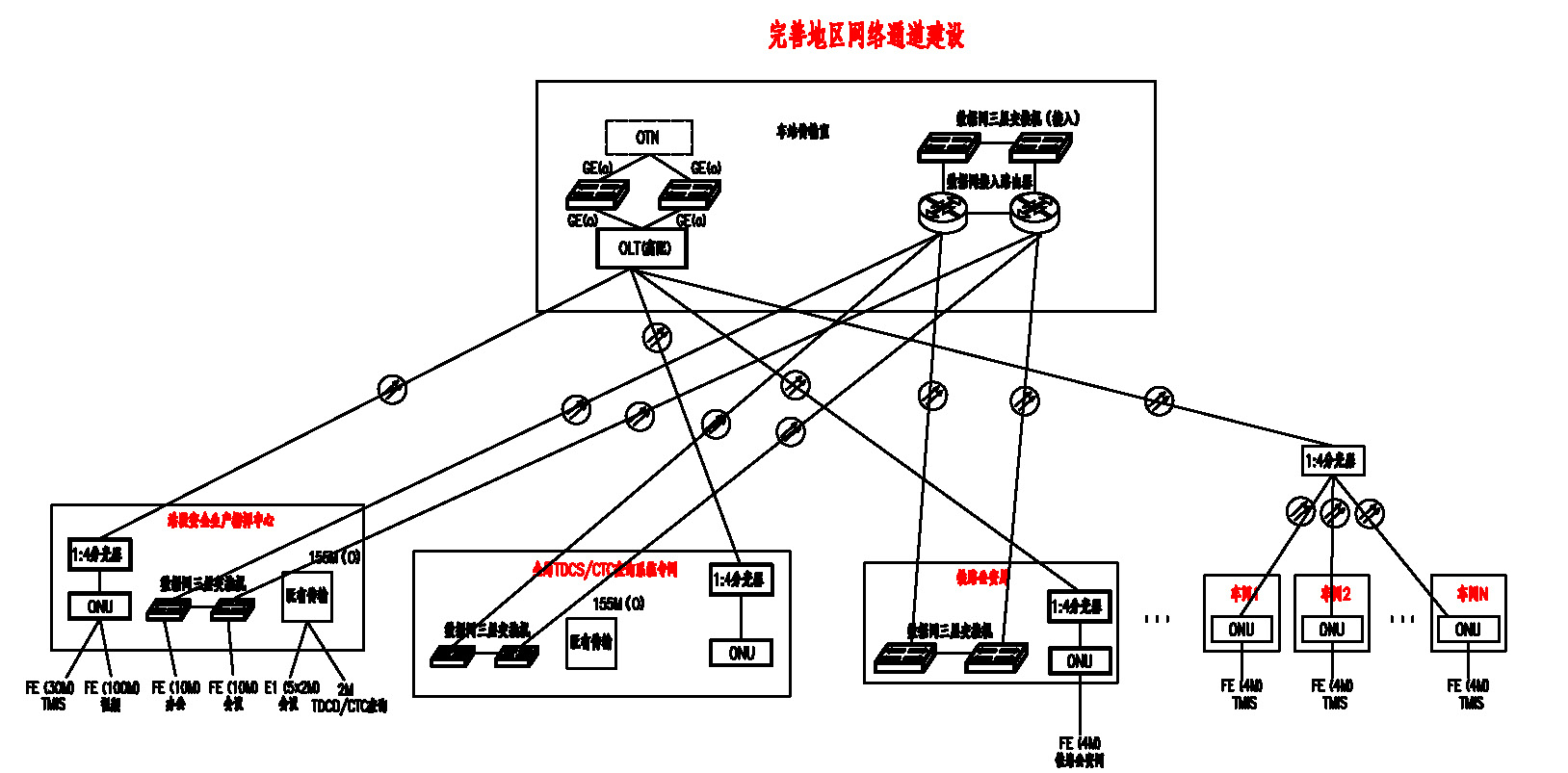 工程采用GPON系統(tǒng)無源光網(wǎng)絡(luò)技術(shù),將網(wǎng)絡(luò)覆蓋到站段車間,完成了全局43個專業(yè)站段以及各專業(yè)站段至管轄車間的網(wǎng)絡(luò)通道建設(shè),投資約1.6億。其中包含全局管所有站段及車站的IP數(shù)據(jù)網(wǎng)完善建設(shè)、全局TDCS/CTC查詢系統(tǒng)專網(wǎng)建設(shè)、全局鐵路公安信息網(wǎng)改造建設(shè)及配套約650km的光纜通道建設(shè)。在全路領(lǐng)先運用該項新技術(shù)。