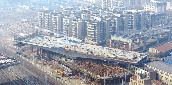 武漢市姑嫂樹路(三環(huán)線~二環(huán)線)工程第二標(biāo)段,全長(zhǎng)1.44公里,投資5.6億元,跨京廣鐵路橋采用墩頂轉(zhuǎn)體施工方案跨越漢孝城際、合武鐵路、京廣鐵路,本工程是國(guó)內(nèi)首次在橋梁墩頂上進(jìn)行大噸位混凝土箱梁轉(zhuǎn)體施工,單個(gè)轉(zhuǎn)體重量(17300噸)創(chuàng)下亞洲之最、世界第二。