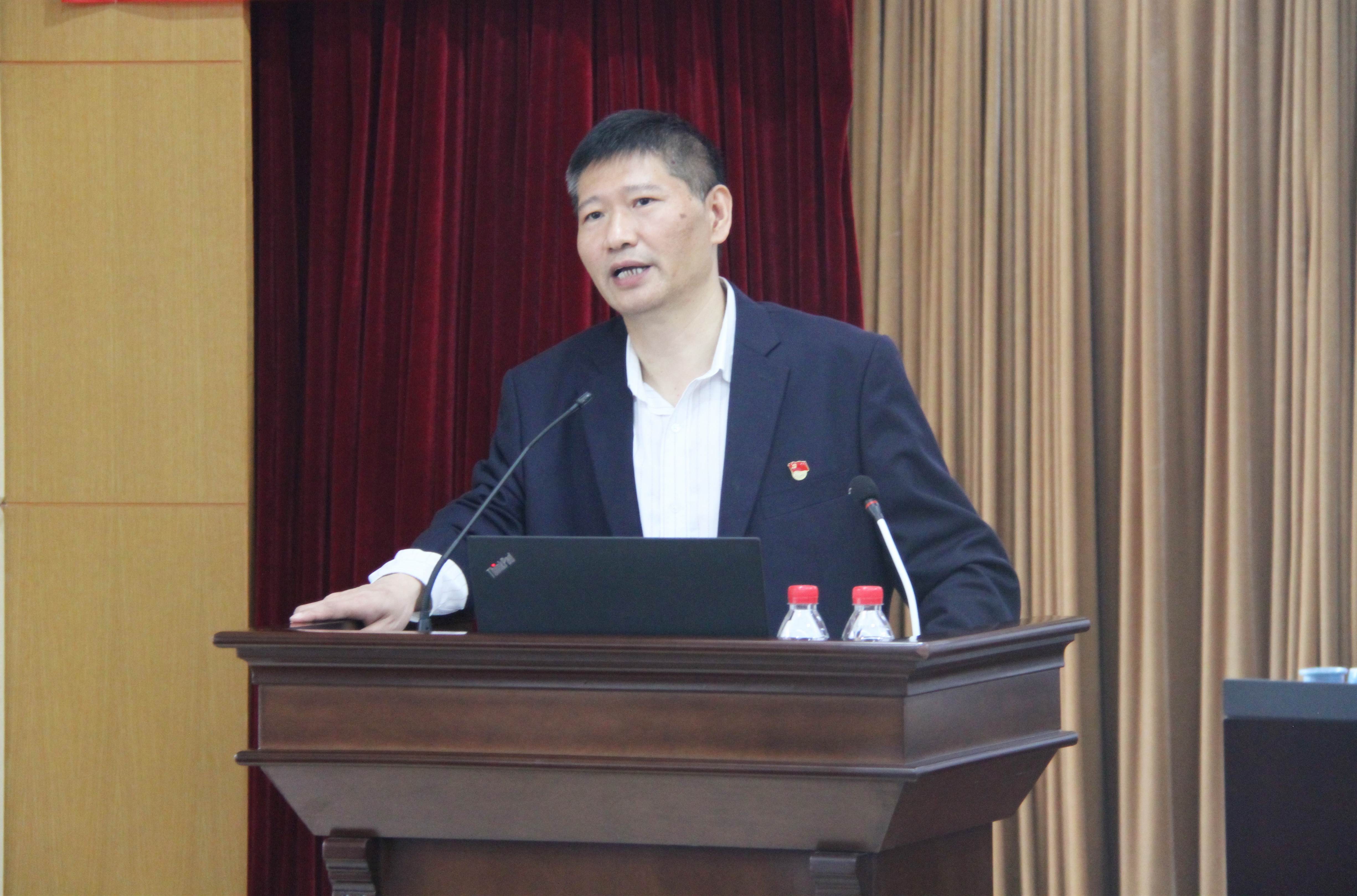 查京屏?xí)涀髁祟}為《“不忘初心、牢記使命” 堅(jiān)持守正創(chuàng)新、務(wù)實(shí)擔(dān)當(dāng)、精誠(chéng)服務(wù) 全力夯實(shí)武漢院高質(zhì)量發(fā)展基礎(chǔ)》的講話。