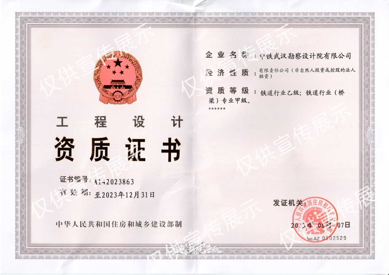 通過本次增項(xiàng)升級(jí),武漢院將能承攬鐵道行業(yè)橋梁專業(yè)建設(shè)工程項(xiàng)目主體工程及其配套工程的設(shè)計(jì)業(yè)務(wù),其規(guī)模不受限制。截至目前,武漢院共持有工程設(shè)計(jì)鐵道行業(yè)乙級(jí);鐵道行業(yè)(橋梁工程)專業(yè)甲級(jí);市政行業(yè)(道路工程、橋梁工程、軌道交通工程)專業(yè)甲級(jí);市政行業(yè)(排水工程)專業(yè)乙級(jí);工程勘察專業(yè)類巖土工程(勘察)甲級(jí);工程勘察專業(yè)類乙級(jí)、勞務(wù)類(工程鉆探)以及乙級(jí)測(cè)量等多項(xiàng)資質(zhì)。